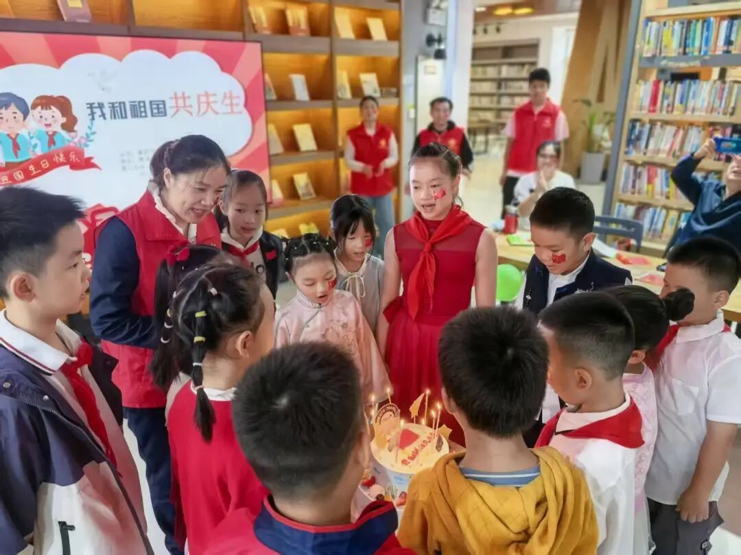 襄阳市樊城区新时代文明实践中心在襄阳汉江阅读推广中心新时代文明实践基地开展“我与祖国共庆生”关爱留守儿童主题活动。