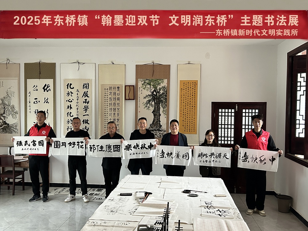 钟祥市东桥镇新时代文明实践所开展“翰墨迎双节 文明润东桥”主题书法创作文明实践活动。活动现场墨香四溢,书法爱好者们挥毫泼墨,以笔寄情、以字言志,创作出一幅幅饱含节日祝福的书法作品。参与者们以书会友、交流心得,在传承中华优秀传统文化的同时,营造了浓厚的节日氛围。