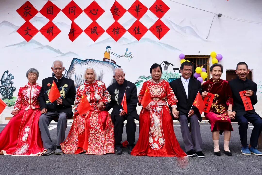 通山县通羊镇新时代文明实践所举办“家国同心庆华诞·文明新风伴佳节”主题文明实践活动。活动旨在弘扬尊老敬老的优良传统,倡导移风易俗,弘扬文明乡风。现场不仅有文艺表演、有奖问答、月饼制作和猜灯谜等趣味环节,还专为村内长者设置了婚纱摄影,为他们定格幸福瞬间。