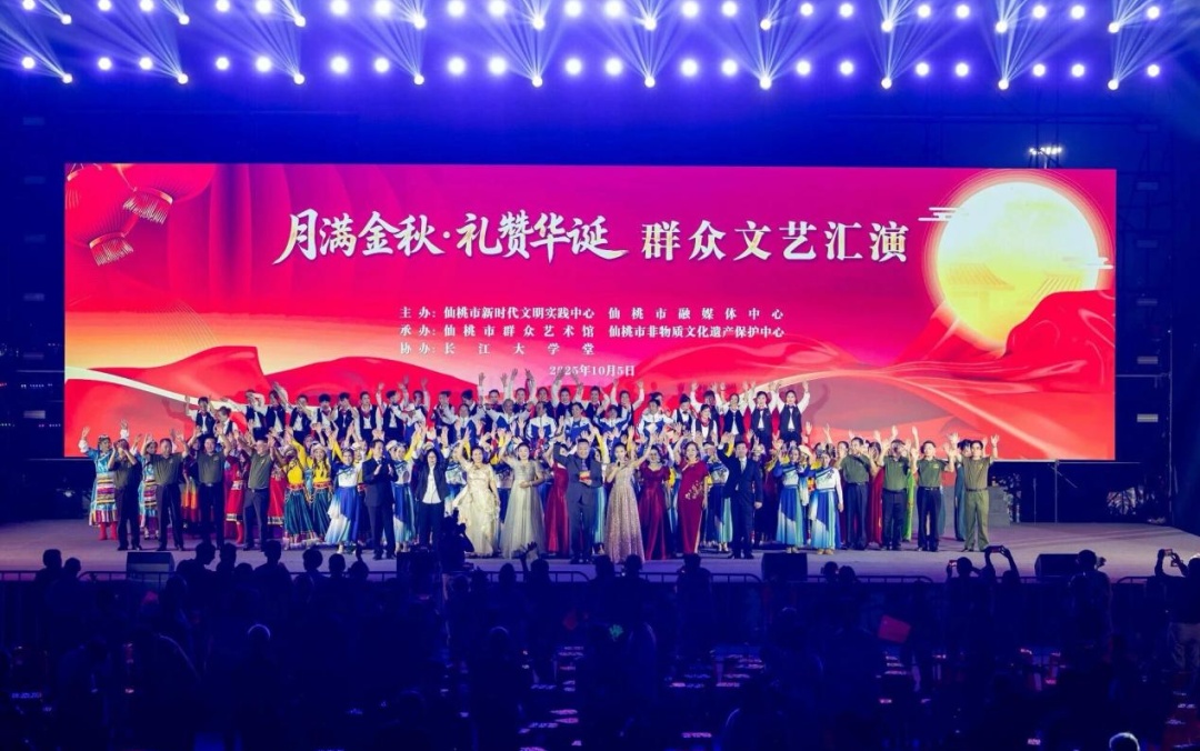 节日期间,由仙桃市新时代文明实践中心、融媒体中心主办,群众艺术馆、非物质文化遗产保护中心承办的“月满金秋·礼赞华诞”为主题的群众文艺汇演在汉江奥运公园广场精彩亮相,为市民带来一场融入家国情怀与传统文化精髓的视听盛宴。