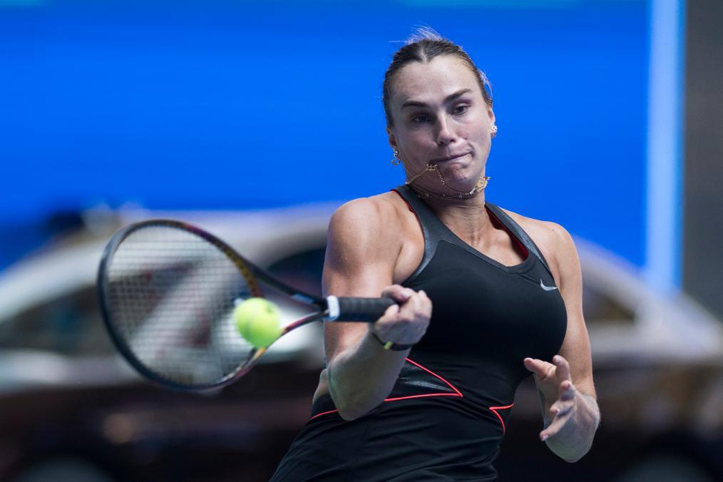 10月10日,萨巴伦卡在比赛中回球。新华社记者 伍志尊 摄