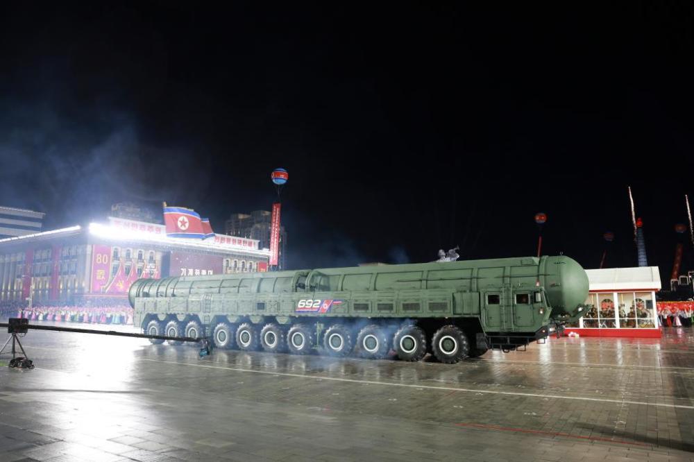 10月10日晚,朝鲜在首都平壤市中心的金日成广场举行盛大阅兵式,庆祝朝鲜劳动党成立80周年。朝鲜劳动党总书记、国务委员长金正恩在阅兵式上发表讲话。多国政要出席阅兵式。