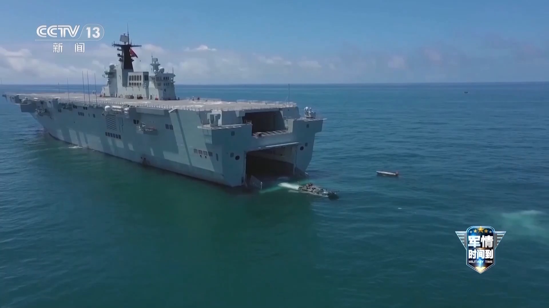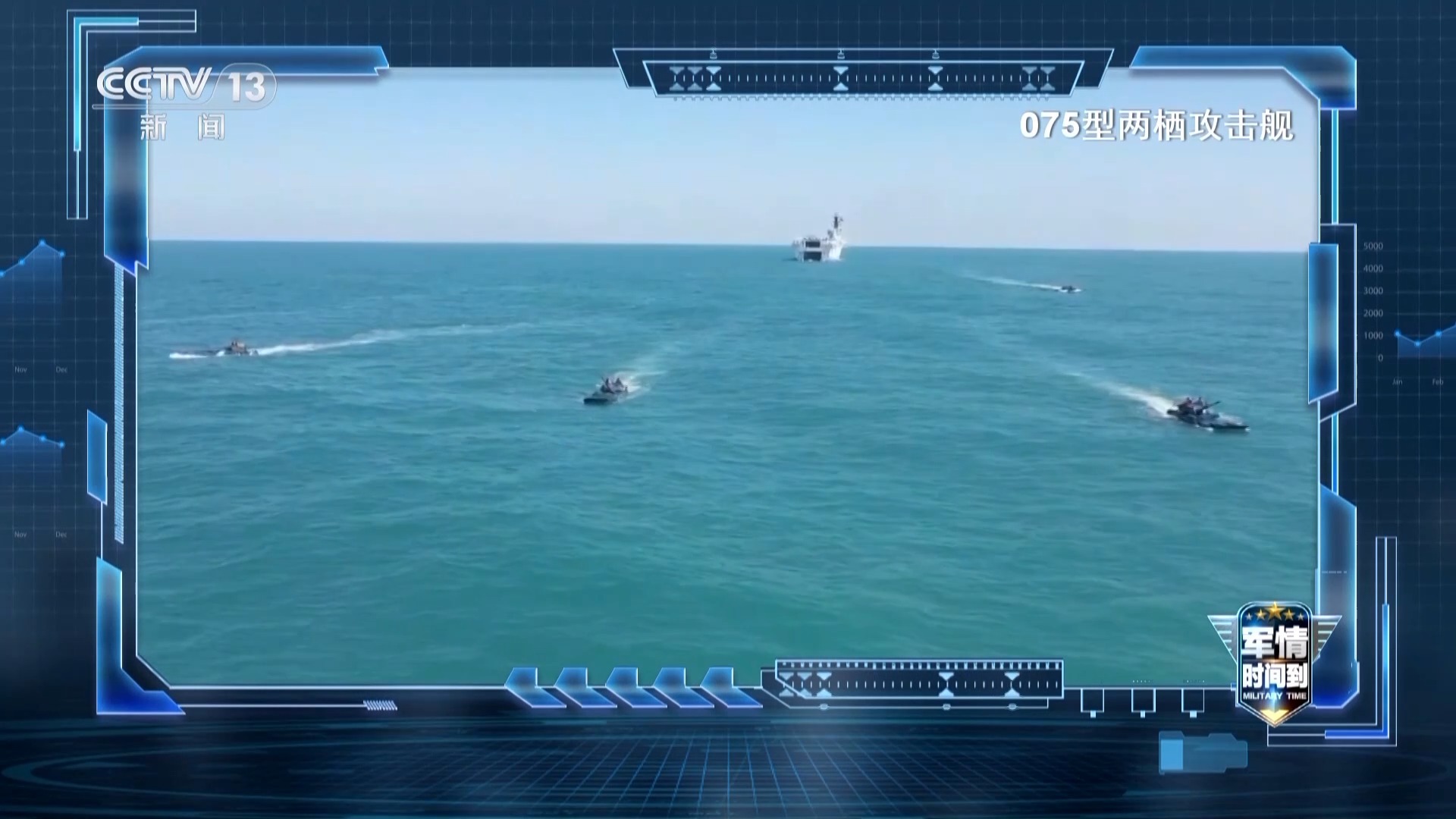 总台军事观察员 魏东旭:在岛屿作战环境当中,075型两栖攻击舰是大型的兵力投送平台,也是一个综合化的作战基地。它可以同时起降多架直-8型的直升机,可以快速向岛屿和沿岸投送突击兵力。