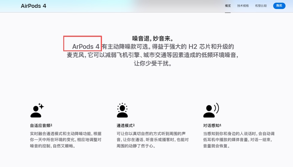 10月11日,记者查询发现,在苹果中国官网的AirPods 4耳机介绍页面出现了“错别字”,在介绍该款耳机主动降噪能力的文案中,原本的“AirPods 4”被拼写成“ArPods 4”。截至发稿,该错误依然没有被改正。