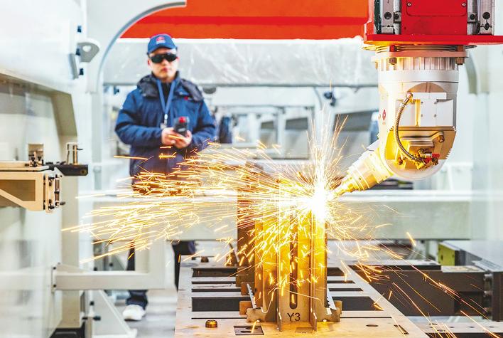 华工科技智能制造产业园内,技术人员正在调试激光设备。(湖北日报全媒记者 薛婷 摄)