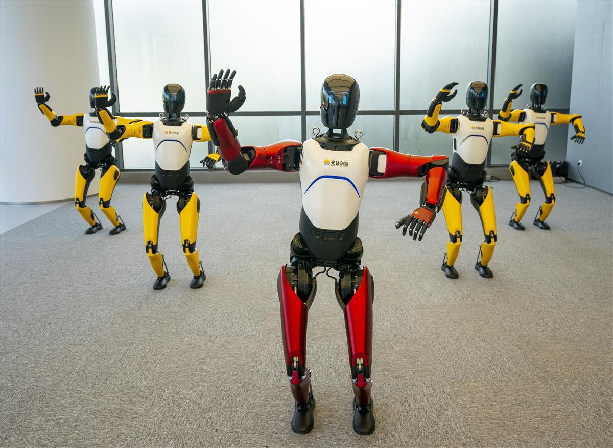湖北人形机器人创新中心,光谷东智机器人表演舞蹈。(湖北日报全媒记者 魏铼)