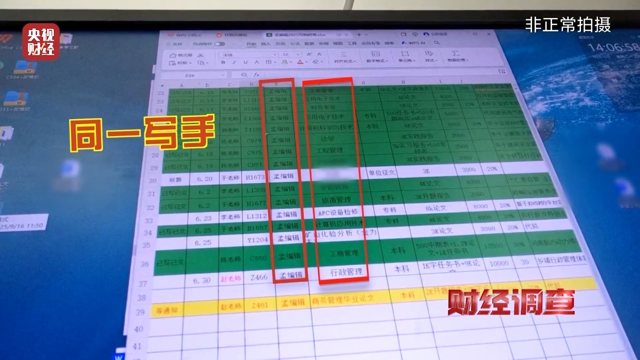 近期总台《财经调查》栏目接到群众反映,有个别企业,公开大肆招聘所谓“撰稿”人员,为有需求的群体有偿代写。只要付费,就能批量生产假文章、假论文,甚至形成了一条灰色生意链条。