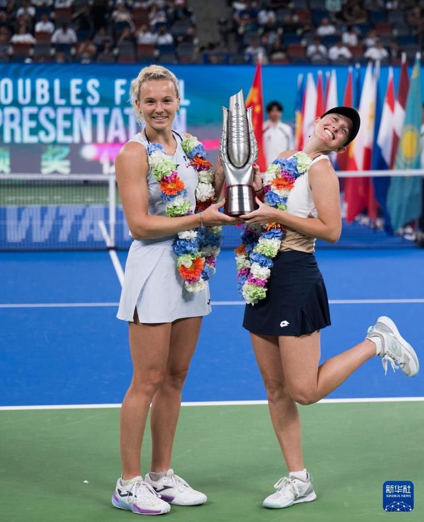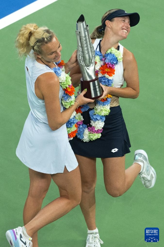 当日,在2025年WTA武汉网球公开赛女子双打决赛中,亨特(澳大利亚)/斯尼亚科娃(捷克)组合2比0战胜达尼丽娜(哈萨克斯坦)/克鲁尼奇(塞尔维亚)组合,夺得冠军。