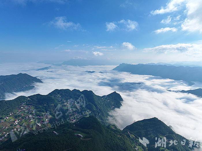 湖北日报客户端讯(通讯员焦国斌)10月11日,巴东县水布垭镇美如仙境,错落村庄与翻涌云海、叠翠青山、澄澈天空相映,构成一幅动人的生态画卷。