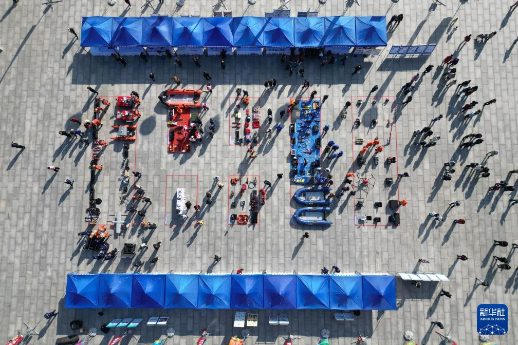 10月13日,由甘肃省防灾减灾救灾委员会办公室、甘肃省应急管理厅主办的第36个国际减灾日省级主会场活动在兰州市东方红广场举行(无人机照片)。