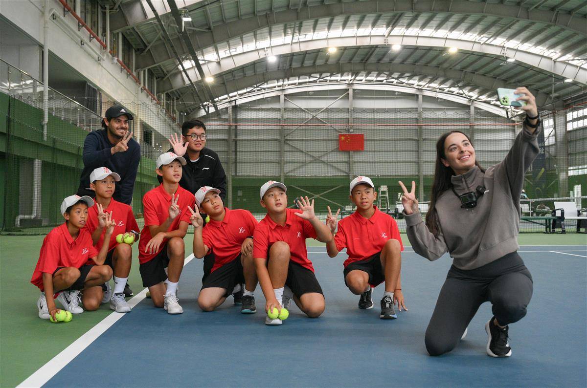冈萨雷斯夫妇探班京山网球公开赛赛事球童。