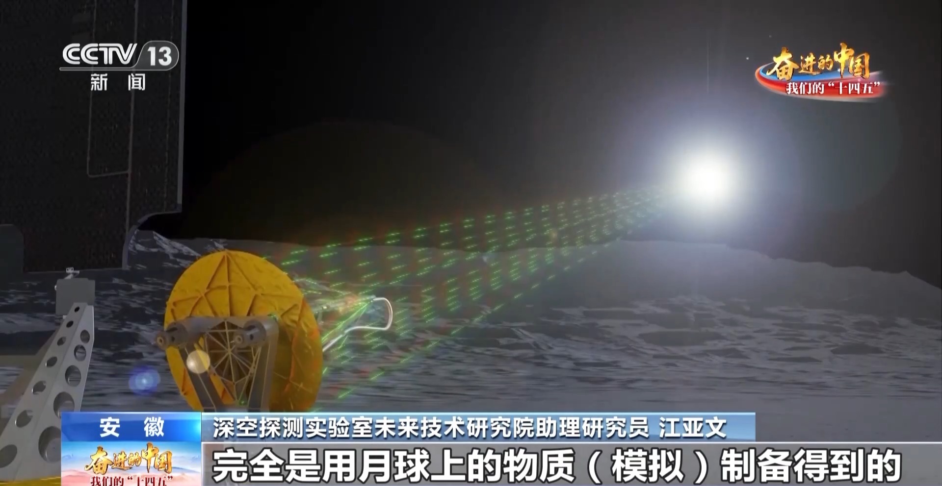 深空探测实验室未来技术研究院助理研究员 江亚文:这块黑色的砖,就是用模拟月壤3D打印出来的,仔细看它其实是一层一层、一道一道的,这是因为我们通过装置汇聚太阳光,形成高能光束,将月壤加热到1300摄氏度以上,熔融后逐层成型得到。