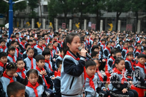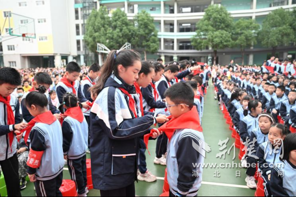 荆楚网(湖北日报网)讯(记者齐一璇 通讯员陈婧)10月13日,湖北省武昌水果湖第一小学以“强国复兴有我 争当新时代好少年”为主题,开展建队日暨“楷模与少年”宣讲实践活动。全校2600多名师生齐聚一堂,以少年之姿,赴红色传承之约,共同汲取榜样的力量。