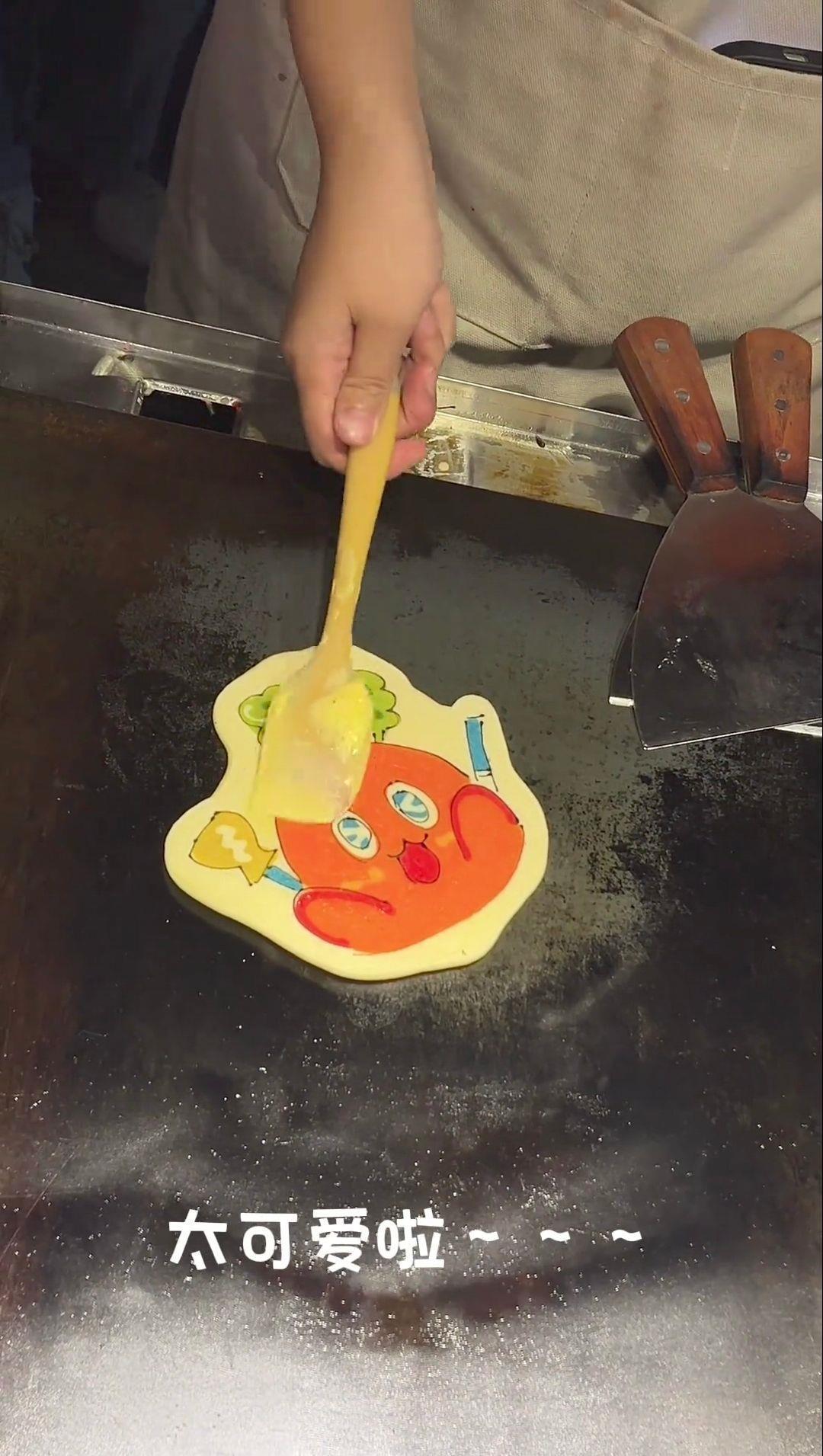 可爱的海绵宝宝、呆萌的蜡笔小新、炫酷的奥特曼……在社交平台上,网友们纷纷晒出视频,分享这名女摊主的作品,其制作的卡通煎饼就如同在作画。