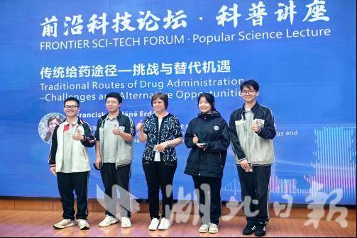 科普环节,西班牙专家Alejandro Cifuentes、匈牙利专家Franciska Vidáné Erdő分别围绕“严肃的科学与有趣的科学家”“传统给药途径—挑战与替代机遇”主题在华中科技大学附中为学生们贡献了两堂生动的科普公开课。