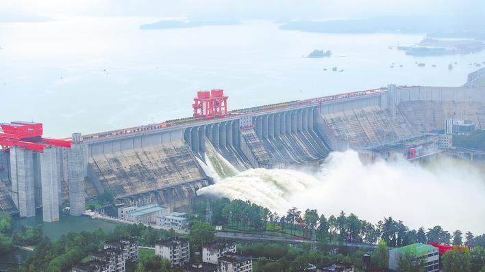 丹江口水库开闸泄洪迎战秋汛。 (湖北日报通讯员 刘昆 摄)
