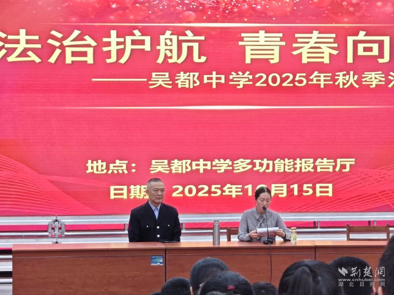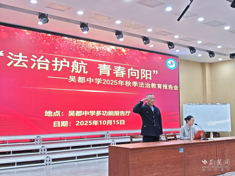 荆楚网(湖北日报网)讯(通讯员 夏杰伦)10月15日,鄂州市吴都中学围绕“法治护航,青春向阳”主题,举办2025年秋季法治教育报告会。活动特邀湖北省鄂东监狱退休干警吕新江担任主讲嘉宾。