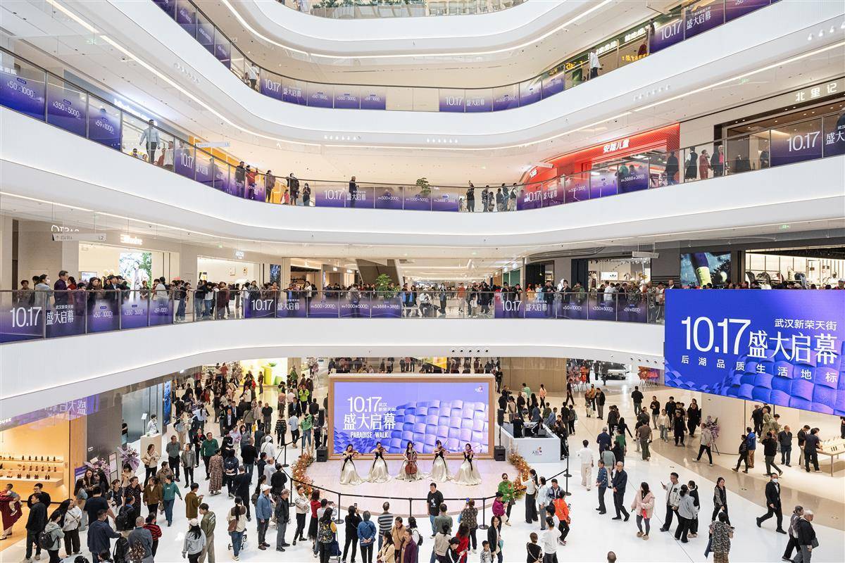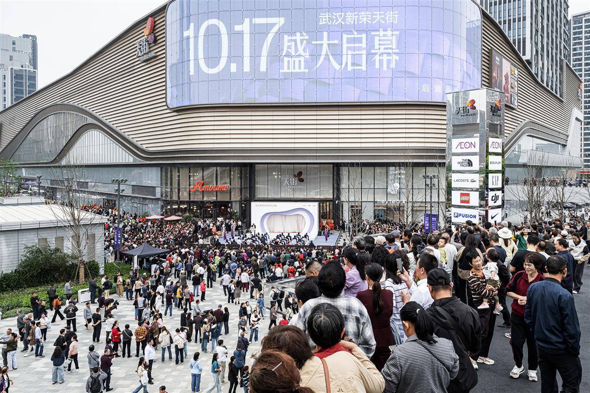 10月17日,位于后湖大道与汉黄路交汇处的武汉新荣天街正式开业。现场人头攒动,不少周边市民闻讯前来“尝鲜”。(湖北日报全媒记者 任勇 摄)