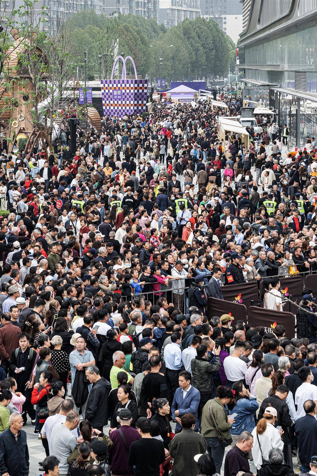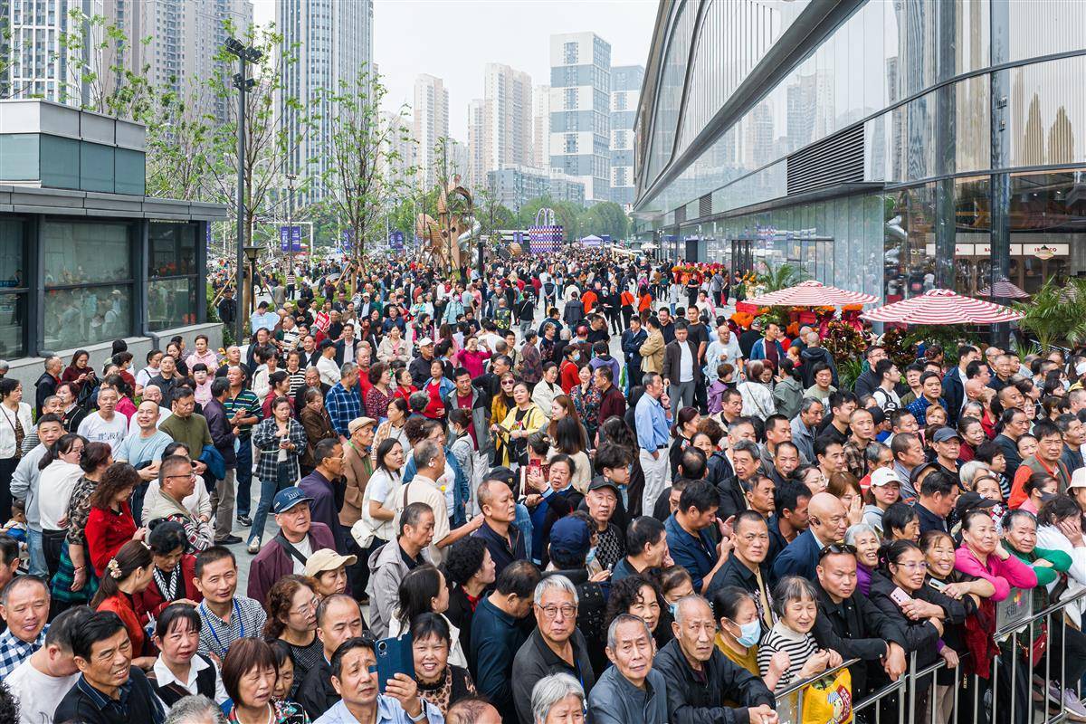 10月17日,位于后湖大道与汉黄路交汇处的武汉新荣天街正式开业。现场人头攒动,近万名周边市民闻讯前来“尝鲜”。(湖北日报全媒记者 任勇 摄)