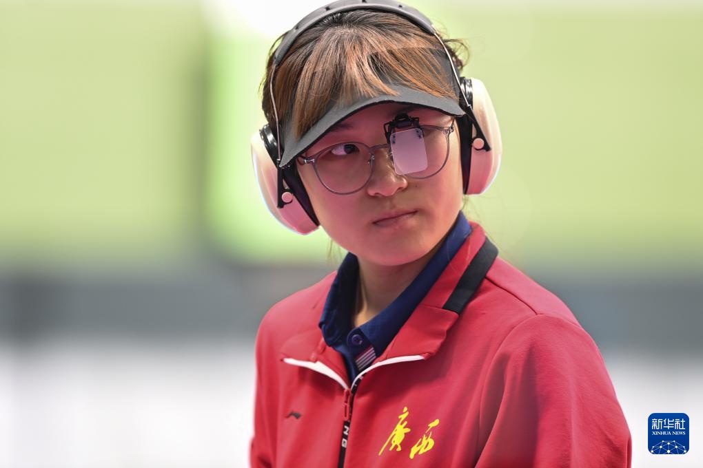 当日,第十五届全运会射击女子10米气手枪团体决赛在广州举行。