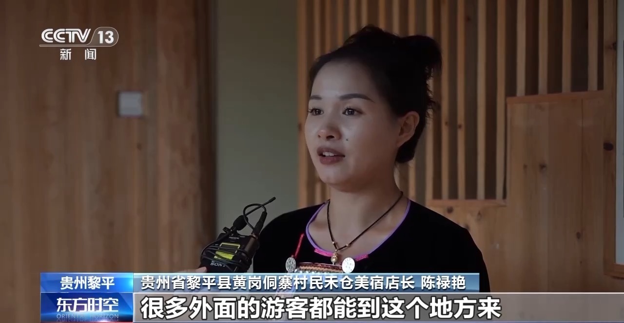 贵州省黎平县黄岗侗寨村民禾仓美宿店长 陈禄艳:很多外面的游客都能到这个地方来,我们去年总收入破百万了,过年会给村民每个农户分红。