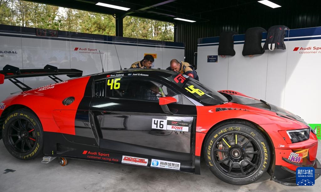 10月17日,奥迪运动亚洲·魅影车队工作人员调试赛车。