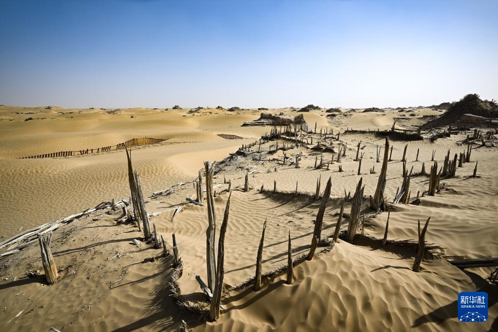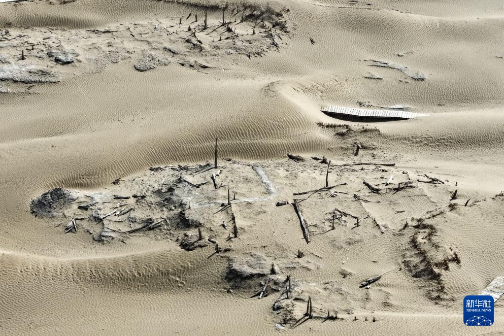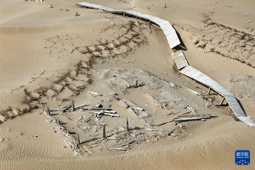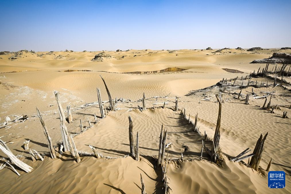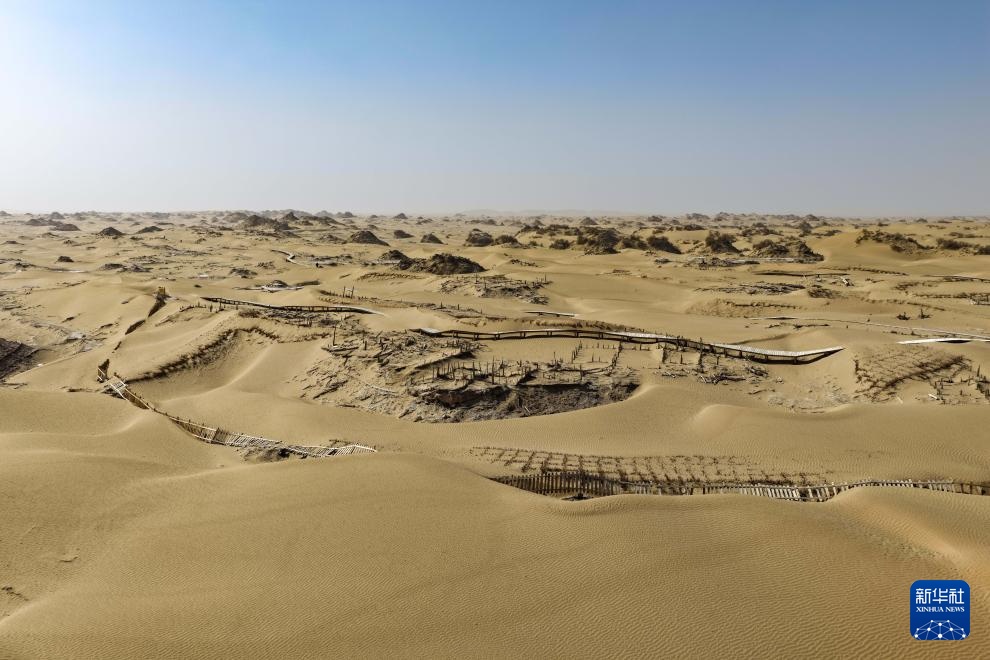这是尼雅遗址内建筑遗迹等(无人机照片,10月17日摄)。