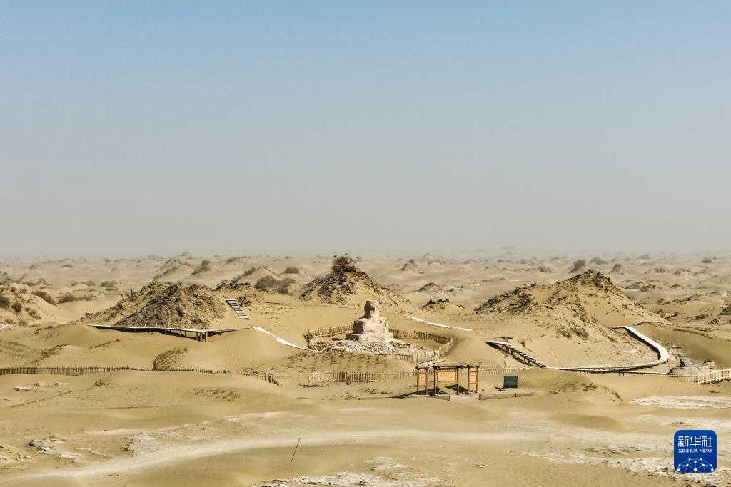这是尼雅遗址内的佛塔(无人机照片,10月17日摄)。