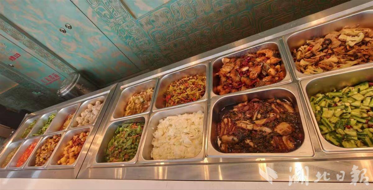 每月17日的湖北省博物馆,承包了游客、市民的白天和夜晚。在汉阳一家私企上班的王女士,下班后约着朋友来体验重磅上新的“湖博食堂”。琳琅满目的菜品、自助称重模式,主打亲民牌又兼具文化味,一行人对这家藏在网红博物馆里的食堂赞不绝口。
