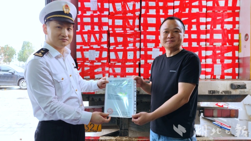 汉阳海关孝感现场业务科黄刚:“此次现场验放6吨汉川河蟹出口至越南,这是汉川,也是孝感市首单鲜活水产品出口。我们武汉海关聚焦汉川河蟹‘鲜、优、特’的核心优势,指导企业完善‘自检自控’,开辟‘绿色通道’,实行预约查验、预约申报出证、优先送检等服务,保障‘鲜’味直达海外。”