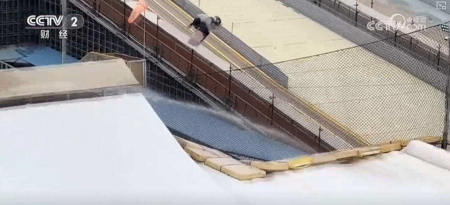目前,场地已经建成了7个不同高度的旱雪气垫跳台。除了面向大众爱好者的1—8米的跳台之外,10米以及14米两个对标冬奥会比赛项目的大跳台主要供专业队训练使用,包括国家队,以及河北、黑龙江等省级集训队,都将这里作为夏季的主要集训地。