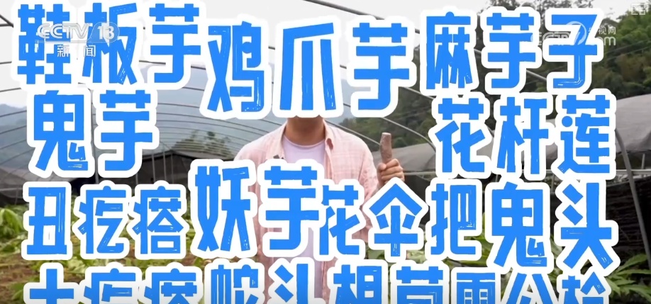 这个就是乐山沐川县的当家特产——魔芋,当地的村民都叫它“土疙瘩”。除了这个名字,还有这些从古到今、从南到北的称呼,其实都是魔芋的名字。除了这些称呼,它还有一个更被人所熟知的洋气的名字——蒟蒻。