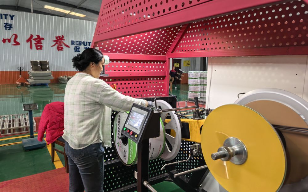 工作人员正在打包贴片式滴灌带。新华社记者李杰 摄