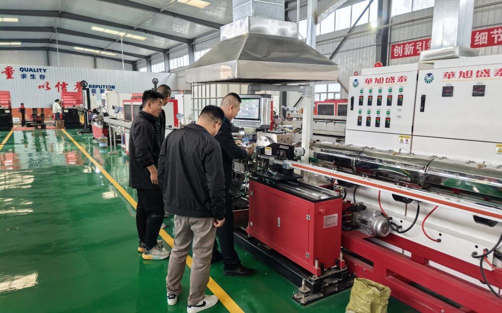武威源硕节水发展有限公司工作人员正在处理物料。新华社记者李杰 摄