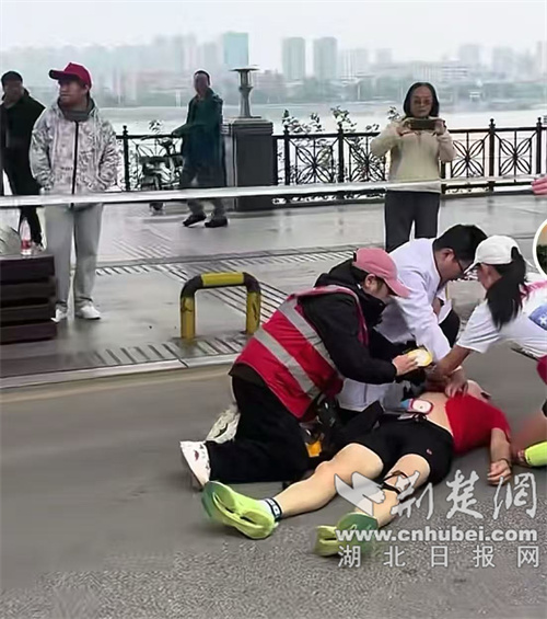 荆楚网(湖北日报网)讯(通讯员 韩永丹)10月19日清晨7时30分,2025襄阳马拉松赛如期开跑。当赛事氛围正酣时,8时45分左右,襄城12公里赛段突发紧急状况——一名中年男性跑者突然倒地,失去意识。