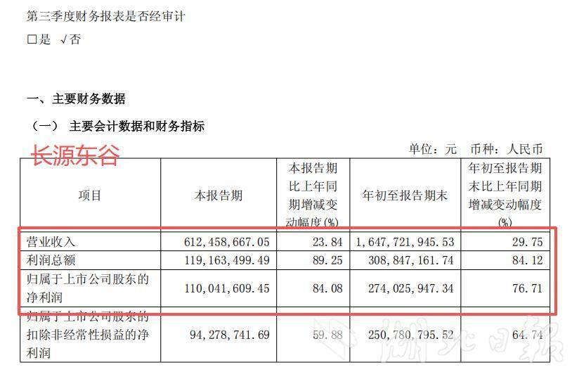 湖北日报讯(记者王艳华)A股上市公司三季报近日密集披露。截至10月21日,已披露三季报的湖北A股上市公司中,长源东谷、祥源新材、光庭信息前三季度业绩大增,嘉必优、鼎龙股份业绩预喜。