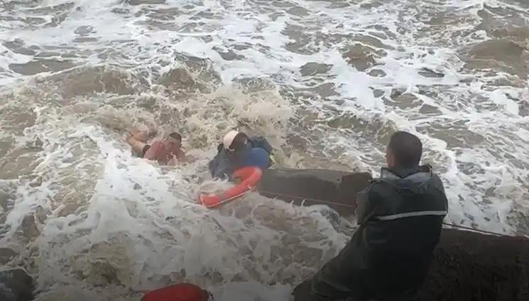 近日,江苏连云港市连云区西大堤,一名男子不慎落入海中,在附近冬泳基地游泳的王玉平跳海救人,最终在他和警民共同努力下,成功救起落水者。王玉平全身上下多处受伤,落水者上岸后跪地表达感谢。