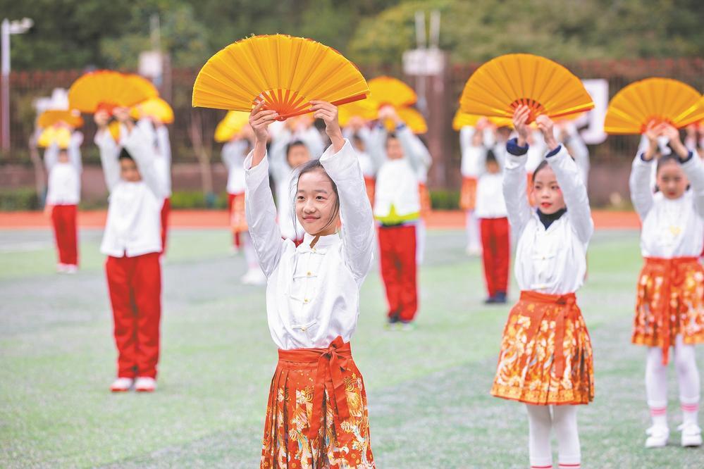 10月21日,市四十八中的学生在大课间表演扇子舞。学生在锻炼中感受运动快乐,增强体魄。