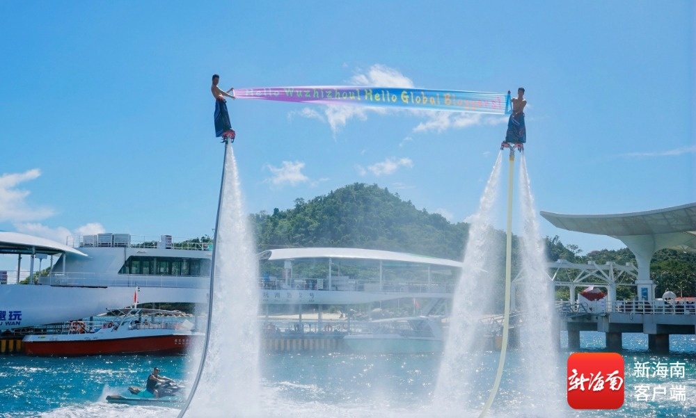 “Hello Wuzhizhou!Hello Global Bloggers!”10月14日,海南旅游国际推荐官到访三亚,登船前往蜈支洲岛。刚下船,博主们便被景区量身打造的接待现场所打动:两名水上飞人踩着喷射装置腾空,将欢迎横幅展开在碧海蓝天间,还有表演者在海面腾空翻转,引得博主们纷纷驻足拍摄,连连感慨“景区的欢迎仪式太令人感动了,也非常惊喜!”