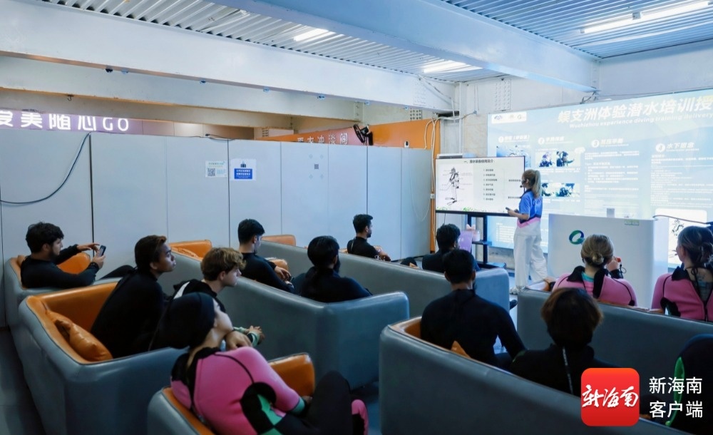 海南旅游国际推荐官体验潜水项目前进行集中培训。记者 李昊 摄