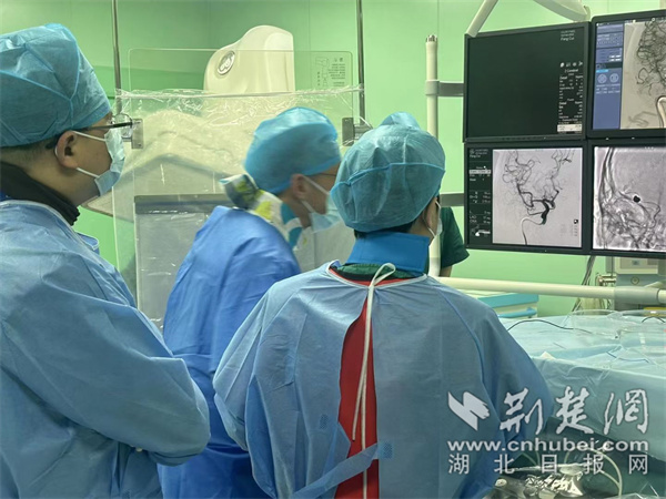 神经外科主任医师陈文为患者实施动脉瘤介入栓塞手术。通讯员供图