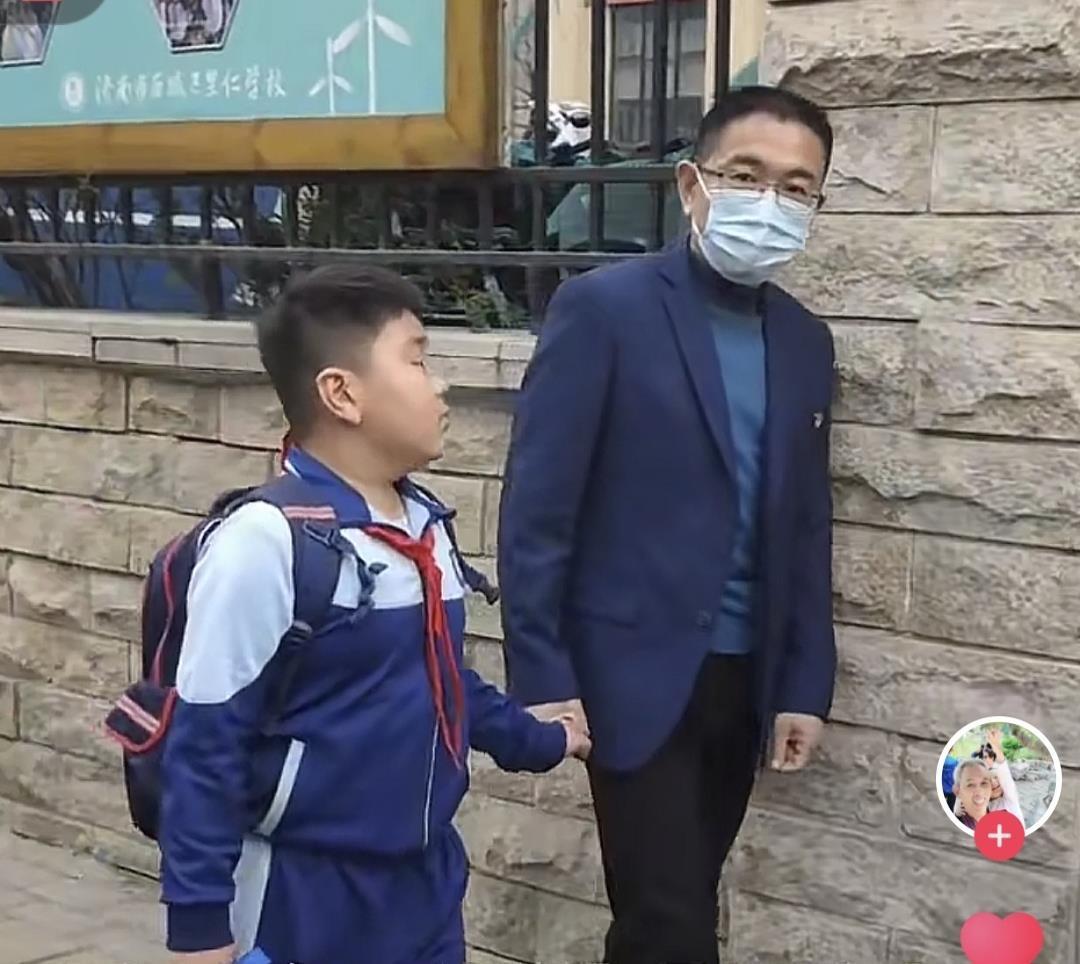 苗校长校门口牵着学生