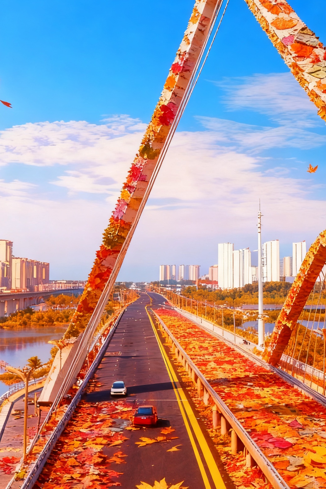 这座跨湖通道,是连接光谷与葛店的要道,更是武鄂交通同网的关键节点,秋日里,驾车行驶于此,可见湖光与两岸秋色共成一景。