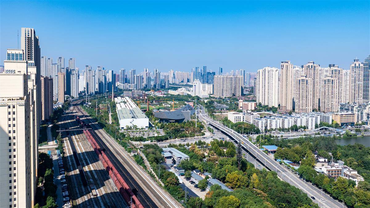2025年8月26日,航拍高楼林立现代化的武汉武昌城区。