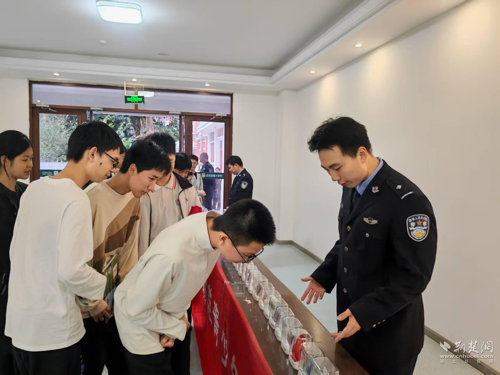 活动伊始,同学们便被精心布置的禁毒模型和宣传展板所吸引。在禁毒模型讲解与展板解说区,武汉市司法局第二强戒所民警结合仿真毒品模型,用通俗易懂的语言向同学们详细介绍了常见毒品、新型伪装毒品的种类及其特征,深刻揭露了毒品对个人身心健康、家庭幸福和社会稳定的巨大危害。同学们认真聆听,仔细观察,面对形态各异的毒品模型,发出了阵阵惊叹,也更加直观地认识到毒品的欺骗性与隐蔽性。