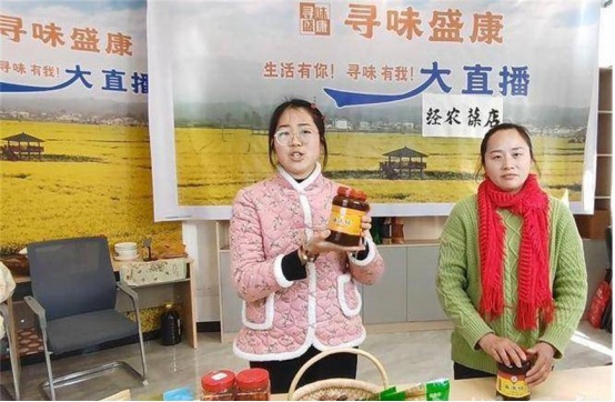 “大家好,欢迎大家来到寻味盛康的直播间,我是今天的主播乡野云妹,云妹今天手里拿的这一款,是我们盛康镇的豆瓣酱,它是一款非遗的产品。”