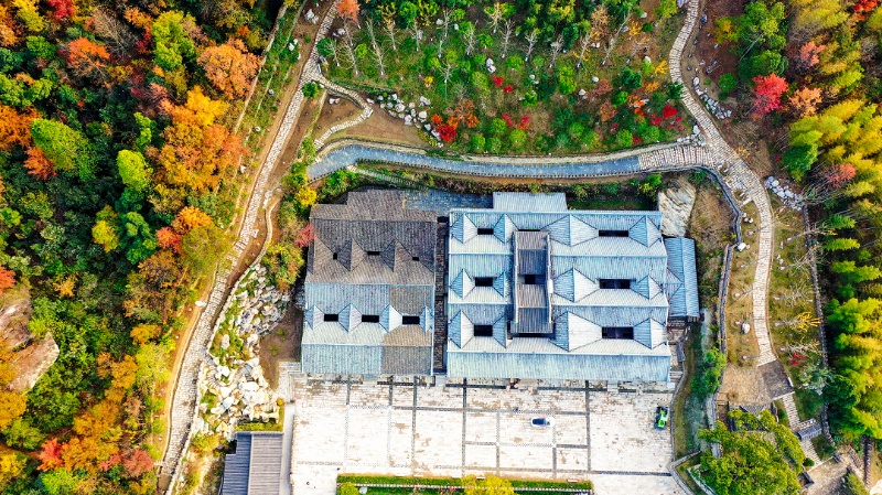 站在古民居宽阔的庭院中间,面前一左一右两栋青砖黛瓦的徽派建筑恢宏大气,入口旁钉着一块“中国传统村落百丈崖村”的银色牌匾,门楣上写着“黄冈民俗文化馆”。尽管是工作日,馆内时不时有游客进出。