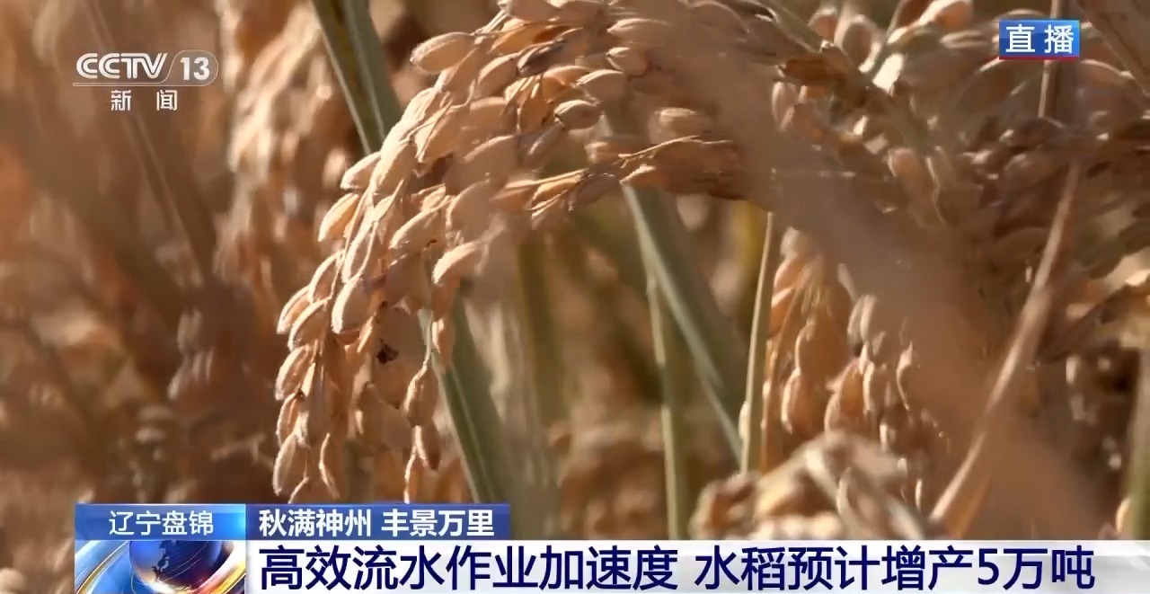 这片稻谷颗粒特别饱满,都把头压弯了,但秆还挺得笔直。这是专门为盘锦盐碱地研发的新品种,既不怕盐碱,又抗倒伏。而且它在口感上下了大功夫,煮出来的米饭更香更弹牙。好米自然能卖上好价钱,预计能让农户每亩地多赚300元左右。