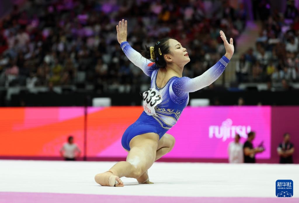 10月23日,张清颖在女子个人全能决赛自由操项目比赛中。