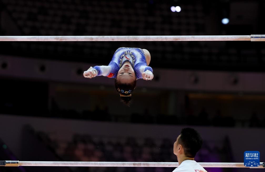 10月23日,张清颖在女子个人全能决赛高低杠项目比赛中。